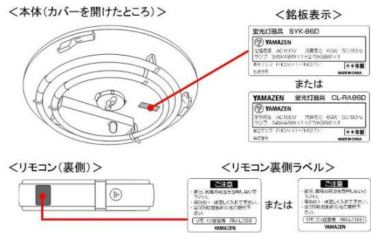 『YAMAZENシーリングライト(蛍光灯タイプ)/SYK-86D、CL-RA86D』製品交換のお知らせ