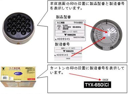 『たこ焼き器 TYX-650、OPX-18』 修理または改良品との交換のお願い