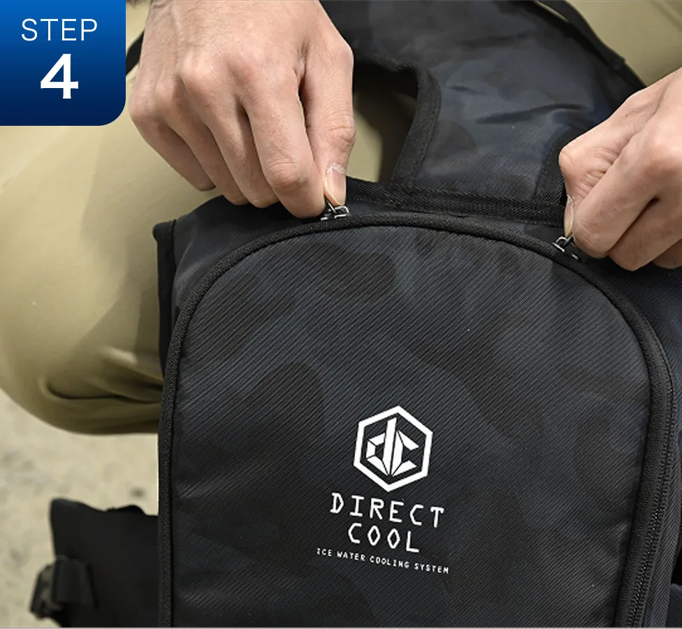 専用チャージボトルで冷やされた冷水が本体のチューブ内を駆け巡ることで、直接身体を冷やします。用意するのは凍ったチャージボトルと水だけ!