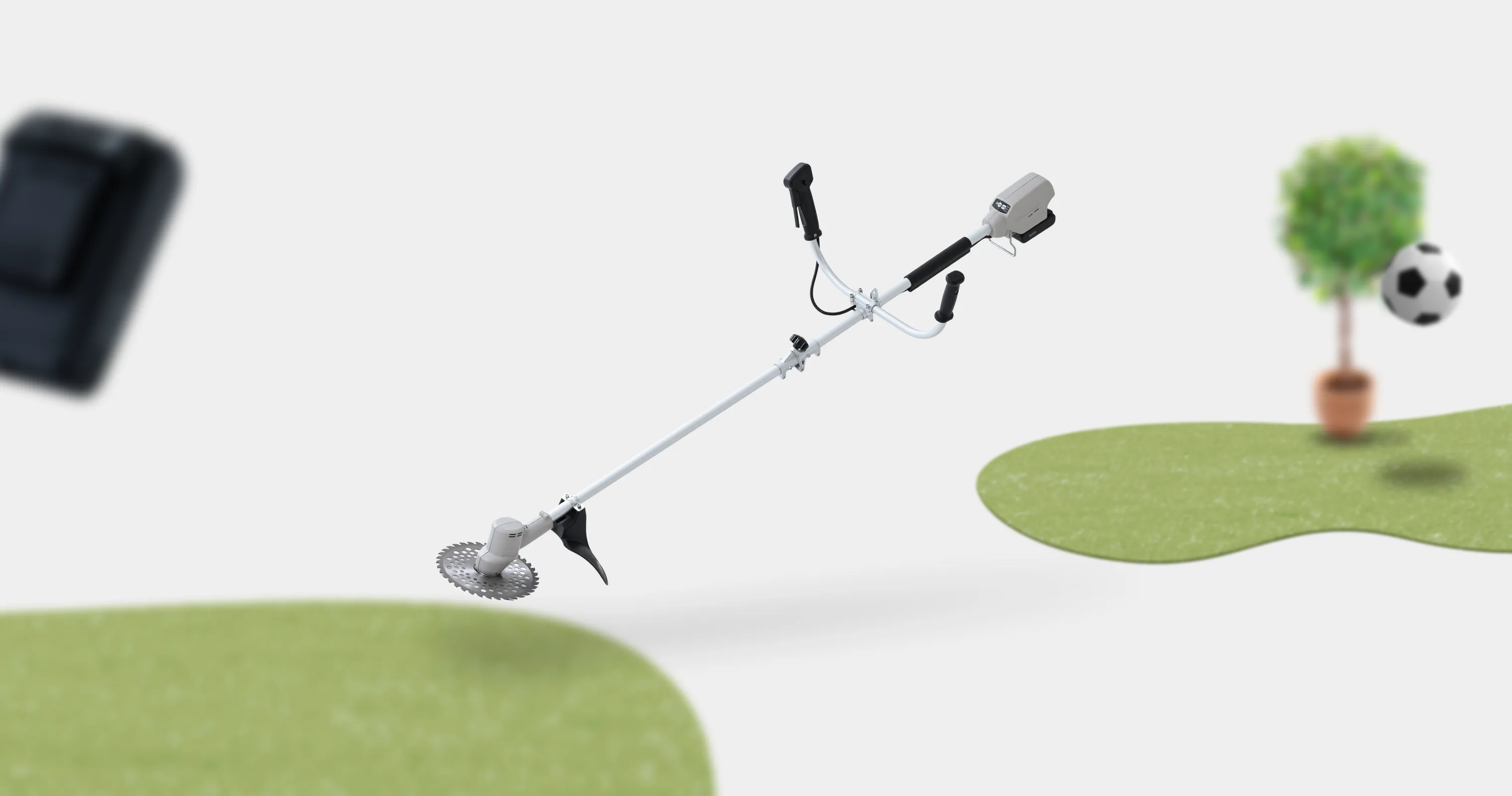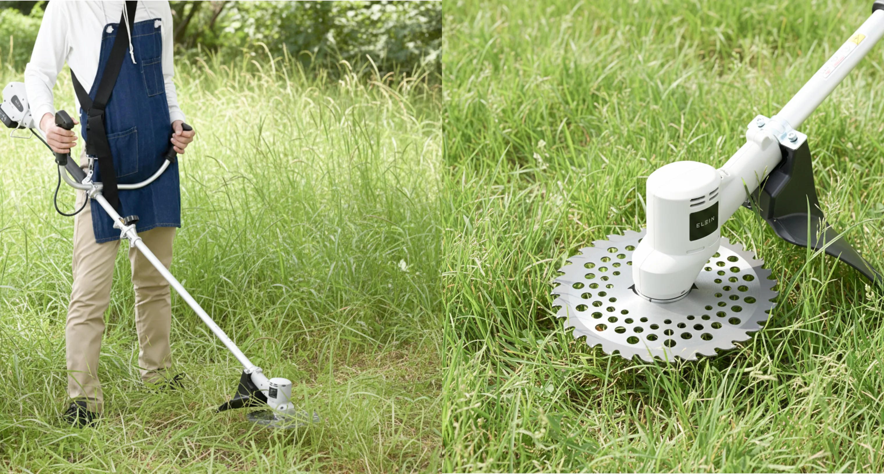 パワフルな回転で伸びた雑草もしっかり刈り取り、広いスペースの美観維持に活躍します。
