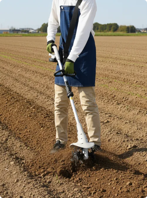 野菜づくりに欠かせない土づくりを、ミニ耕うん機で手軽に。