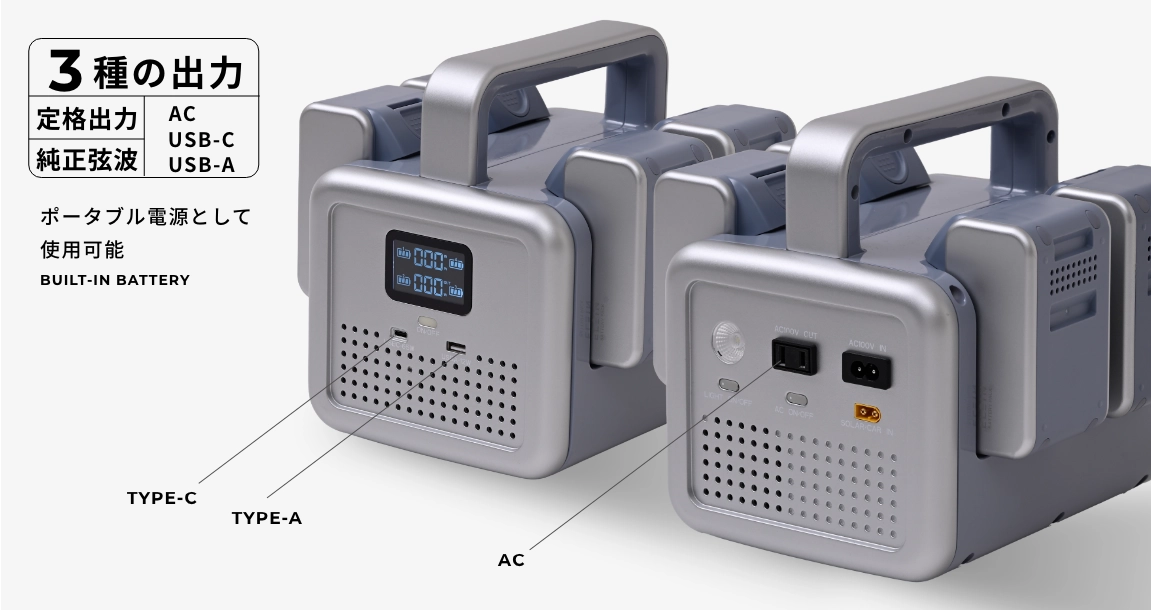 AC電源に加え、TypeA/TypeCで接続できる家電に使用可能。