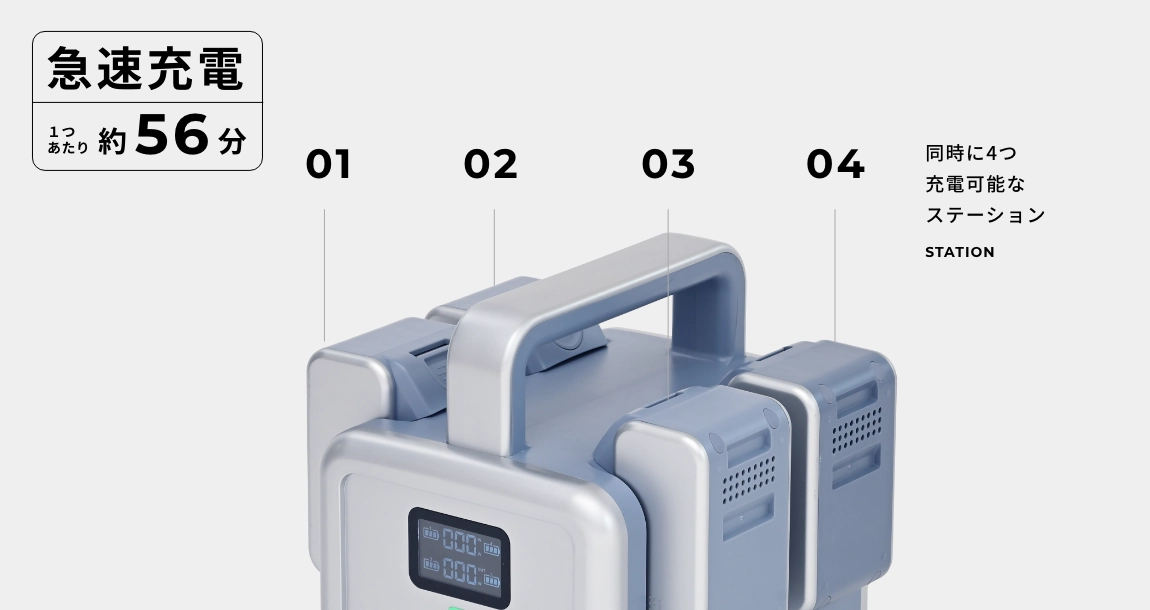 エレインシリーズのバッテリーパックを4つ同時に充電※可能。