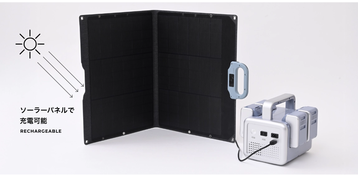 さらに、別売のソーラーパネルと組み合わせれば、太陽の力で電気を蓄え、毎日の節電にも役立ちます。