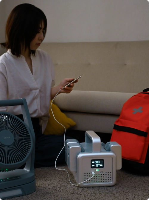 突然の停電でも、エレインの充電ステーションがあれば、いつもの暮らしを守ることができます。