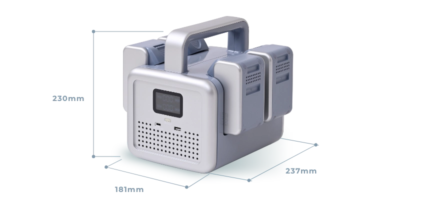 エレインのバッテリーステーションはバッテリーの充電だけではなく、ポータブル電源としても使用可能。さらに、それぞれのバッテリーはエレインシリーズを動かす以外にもスマートフォンの充電などモバイルバッテリーとしてもご利用いただくことが可能です。