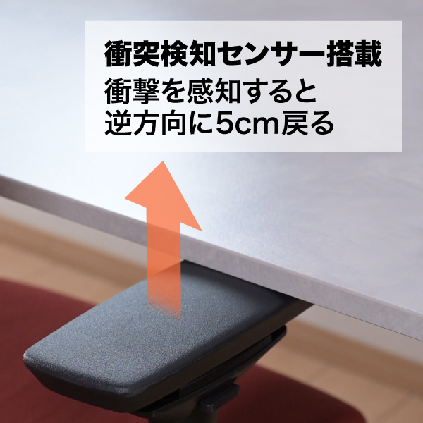 また、上下昇降中にセンサーが衝撃を感知すると、動作をストップし、逆方向に5cm戻る衝突検知センサーを搭載しています。