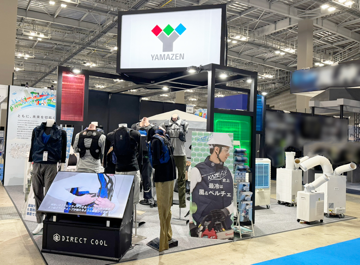 実際に『水冷服ダイレクトクール』や『ファン付ウェアカゼフィット』等の商品もご着用いただけますので、この機会に是非山善ブースまでお越し下さい。担当者が商品についてしっかりとご説明させていただきます。