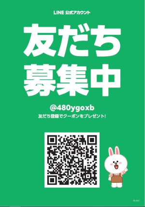 こちらか下記の二次元バーコードから友だち登録が可能なので、是非登録をお願いいたします。