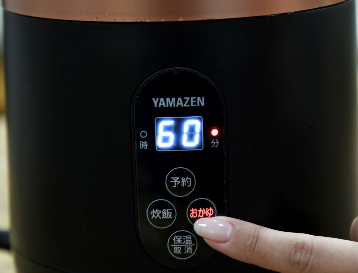 | 仕様 | ●電源:AC100V(50/60Hz) ●炊飯量:0.5-1.5合(最大0.27L) ●電源コード長さ:1.0m ●タイマー予約機能搭載:1-12時間の範囲で予約可能 ●おかゆモード搭載で簡単におかゆが作れる ●保温機能:炊き上げから3時間保温。続けて保温する場合は、再度「保温」ボタンを押してください ●着脱式電源コード採用 ●内釜・内ぶた・しゃもじは丸洗い可能 ●付属品:計量カップ、しゃもじ ●メーカー保証:1年間 |