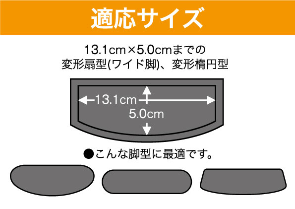 13.1×5cmまでの変形扇型脚(ワイド脚)、変形楕円形脚 |
