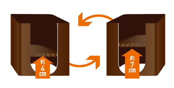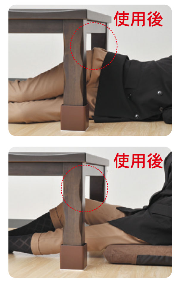 テーブルやこたつの脚に取り付けるだけで、簡単に高さ調整できます。高さ最大7cmアップ。