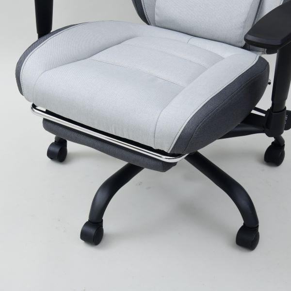 | 仕様 | ●無段階リクライニング&腰当て用クッションも付属したゲーミングチェア ●座面は両サイド・中央で高さが異なり、臀部をすっぽり包み込む形状 ●座面下部には伸縮式のフットレスト(オットマン)が付いており、出し入れが可能 ●大きく、頭部をしっかり支える大きなヘッドレスト ●肘は可変仕様でお好みの高さに調整可能 ●レバー式の無段階リクライニング(任意の角度で固定可能)幅53 長さ80.5cm ●柔らかな印象のファブリック生地 ●座面はガス圧昇降式 ●座面高さ:42-47cm ●座面サイズ:幅52 奥行55cm ●背もたれサイズ:幅53 長さ80.5cm ●荷重の目安静止 90kg |