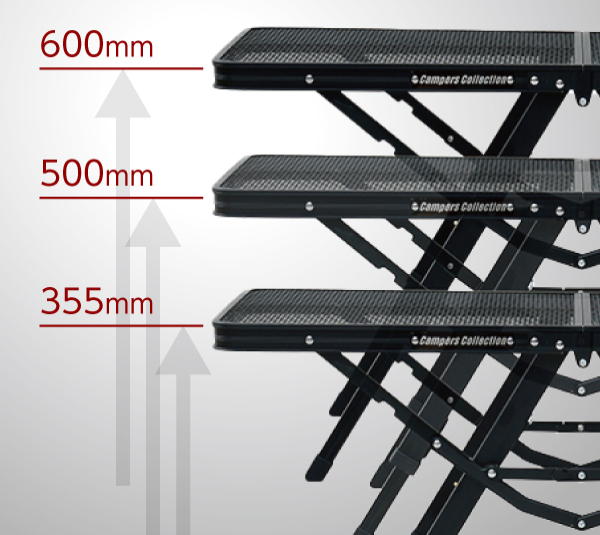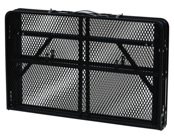 | 仕様 | ●天板と脚部が連動しているためワンアクションで開閉可能 ●耐熱メッシュ天板なので熱いもの置いても大丈夫 ●高さ3段階調整可能(355/500/600mm) ●スピーディーな設置と撤収が可能 ●耐荷重:20kg |