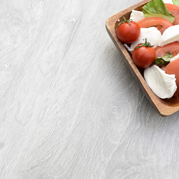 ヴィンテージ感あるホワイトウッド調天板。耐久性が高いメラミン樹脂塗装。