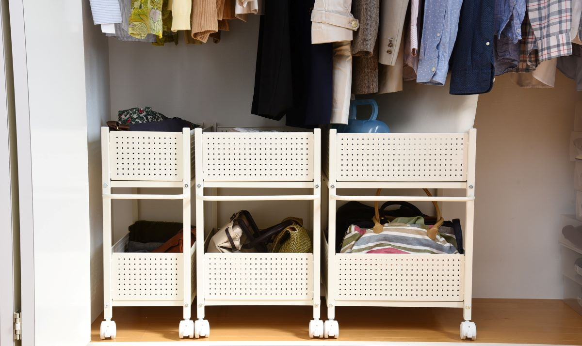 クローゼットの服の下や押入れ下空間を有効活躍する、キャスター付きの収納ラックです(OPR-5726/5738/5744)。