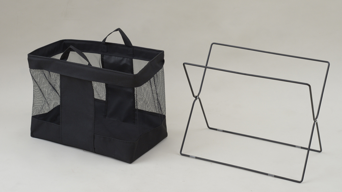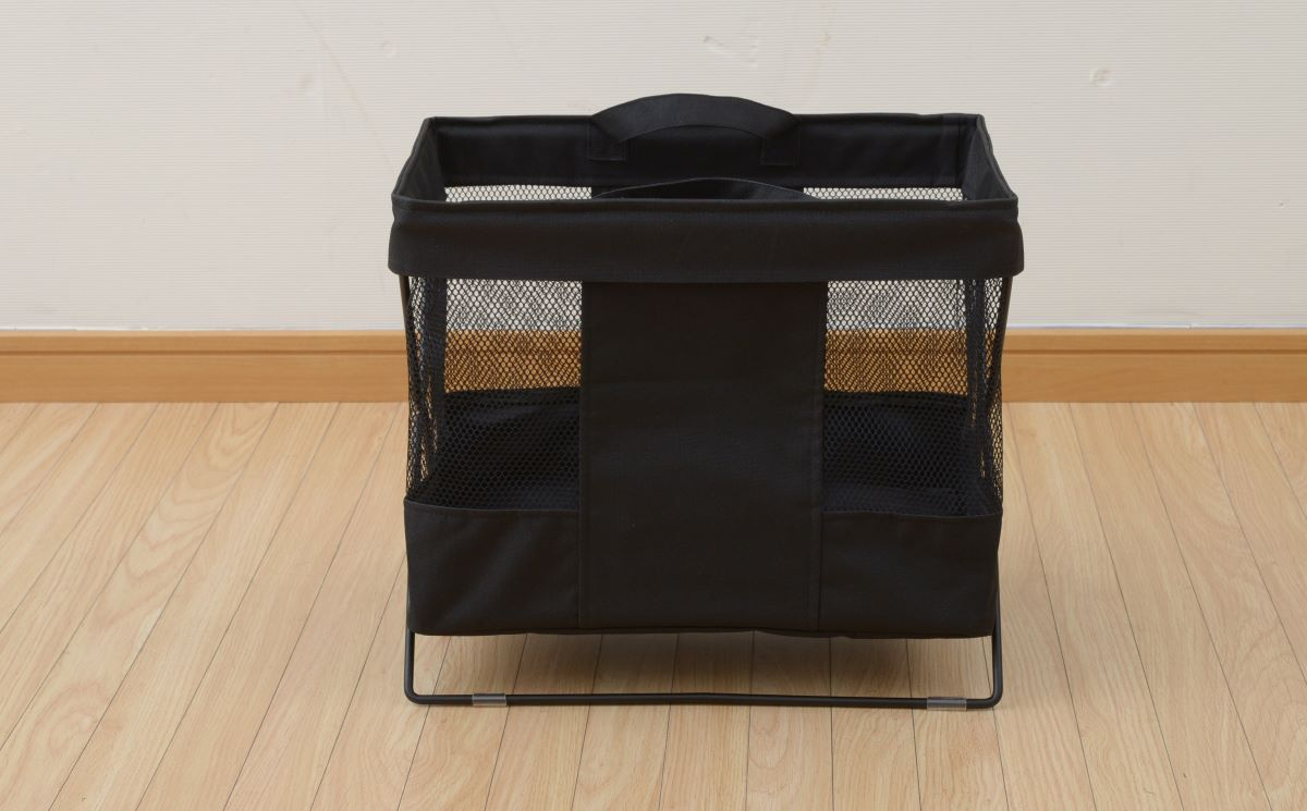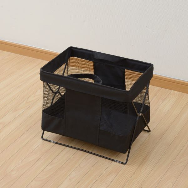 | 仕様 | ●バッグや手荷物を床に直接置かずにちょい置きできるボックス ●折りたたんでコンパクトに収納可能 ●バスケット部とフレームは分離可能、取っ手付きで持ち運びも可能 ●中身が分かりやすい、シースルーのメッシュ仕様 ●収納部内寸:幅44.5 奥行24 深さ32.5cm ●折りたたみ時サイズ:幅4.5 奥行45.5 高さ40.5(取手含むと50.5)cm ●耐荷重:5kg ●広げた際の取っ手を含む高さ:約43.5cm |