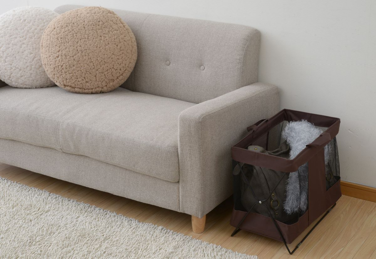 バッグや手荷物を床に直接置かずにちょい置きできるボックスです。バスケット部とフレームは分離可能、取っ手付きで持ち運びもラクラク★