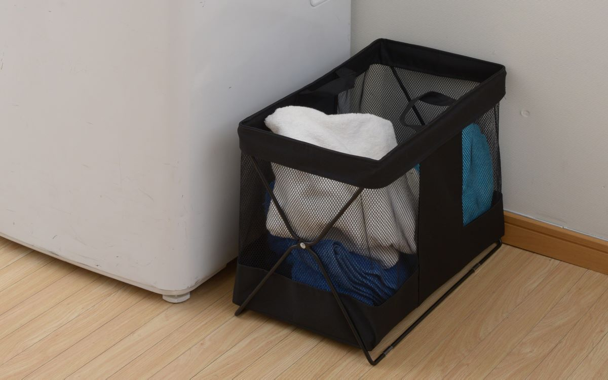 メッシュ性だから中が見えやすく、通気性に優れているので、洗濯カゴにも最適です。