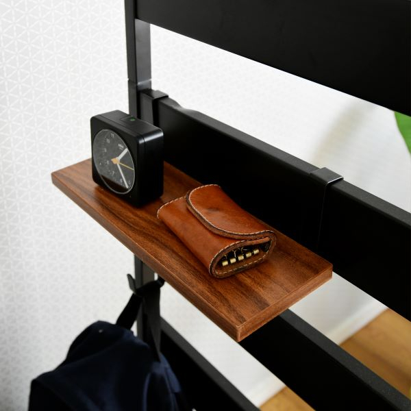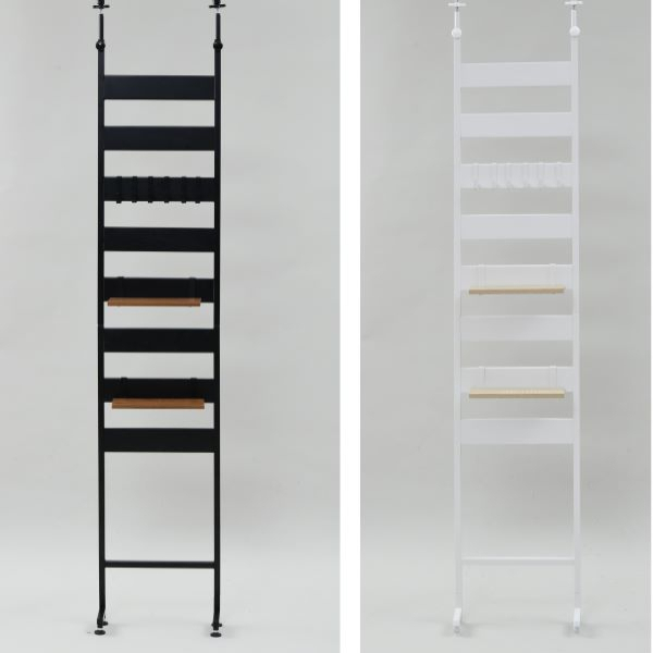 | 仕様 | ●壁面を収納に変えるハンガーラック ●突っ張り固定式で、デッドスペースを有効活用 ●玄関や廊下では、帽子やかばんのちょい掛けに便利 ●スリムでも安定感のある脚部構造で、接地面すっきり奥行15cm ●左右別々に伸縮するので、天井に凹凸のある場所も設置可能 ●脚はガタつきを調整できるアジャスター付き ●伸縮部分もマットにした、お部屋になじむデザイン ●引っ掛け&ディスプレイができる、フック6個・棚板2枚付属 ●耐荷重:フック1個あたり1、棚板1枚あたり2、全体10kg ※物を掛ける際は偏らないようご注意下さい。 ●棚板サイズ:幅40 奥行10cm ●パネルサイズ(1枚あたり):タテ8 ヨコ76cm ●パネル間隔:8.5cm ●床から棚板最下段まで:58cm ※2021年6月18日より、リニューアル販売となります。変更点:つっぱり部の色、フックを6個に増量し色を本体と同色に、トレーから木棚に変わり、パネル間隔を調整し目隠し仕様に変更。 |