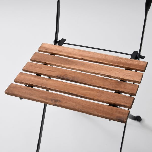 アカシア天然木とスチールの組み合わせがおしゃれなガーデンテーブル&チェアの3点セットです。