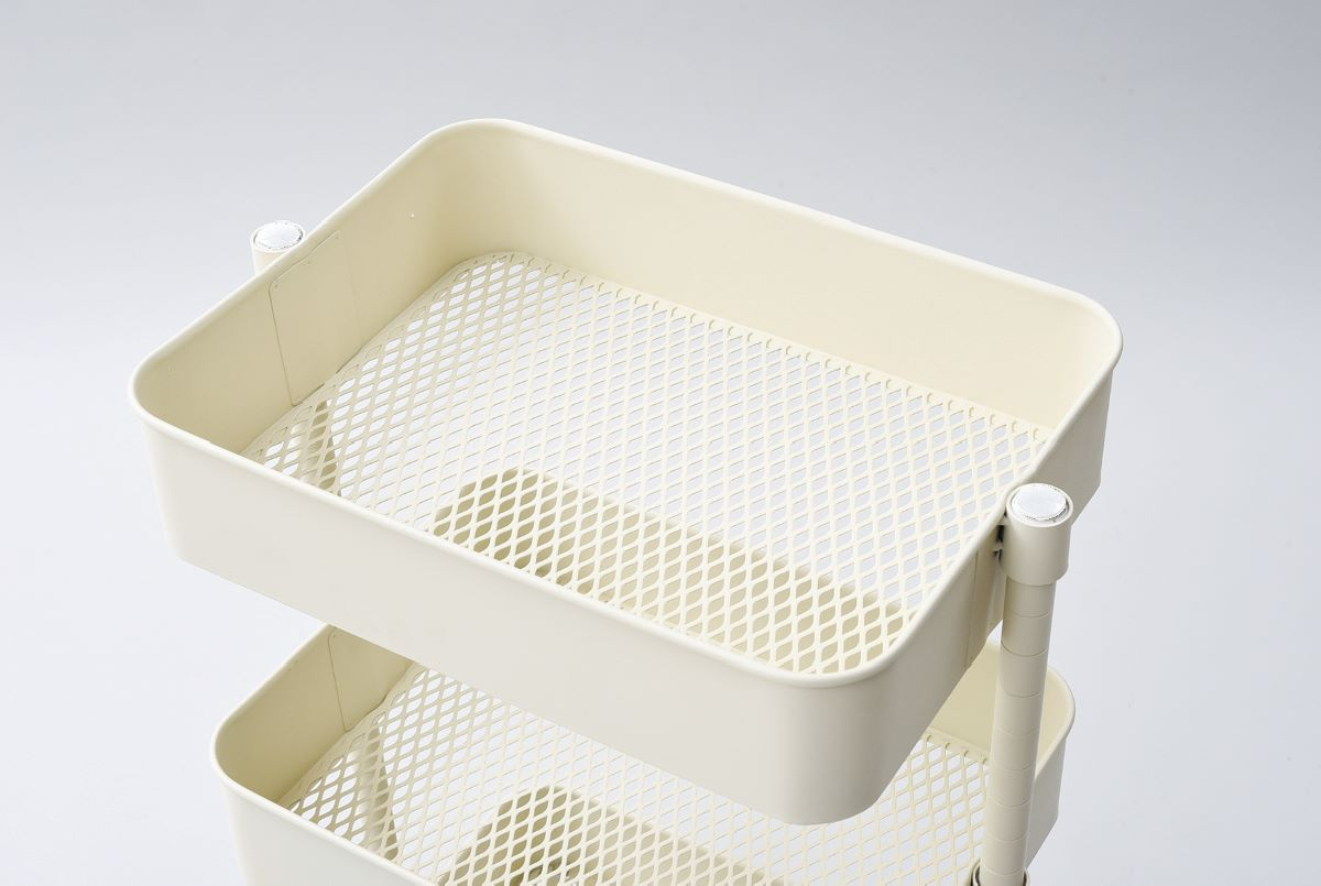 ●組み立てカンタン、スチールラックタイプの本体構造 ●3つのバスケットはモノに合わせて、2.5cm間隔、23段階で高さを選んで設置可能 ●どっしり安定、頑丈なつくり ●重量キャスターで、重いモノが載ってもスイスイ移動 ●バスケットの底は、野菜やタオルの収納にも合う、通気性の良いメッシュ仕様 ●表面はツヤのないマット仕上げ ●バスケット内寸(最大値):幅39 奥行29.5 深さ8.5cm ●耐荷重:1段あたり20kg、全体60kg ●カゴ内寸高さ参考値:中段22.5 下段34cm(最上段、中段は下から14段目、最下段に設定時) ●柱が3分割;上段、中段、下段(キャスター受けあり)、中段を抜いたり、上段を使わずに組み立てることで、2段にして利用可能、各高さは ・通常3段時:81cm ・2段時(中段なし):52.5cm ・2段時(上段なし):53.5cm ※2020年2月1日よりカーキ色を、2022年11月18日よりグレージュ色を追加 |