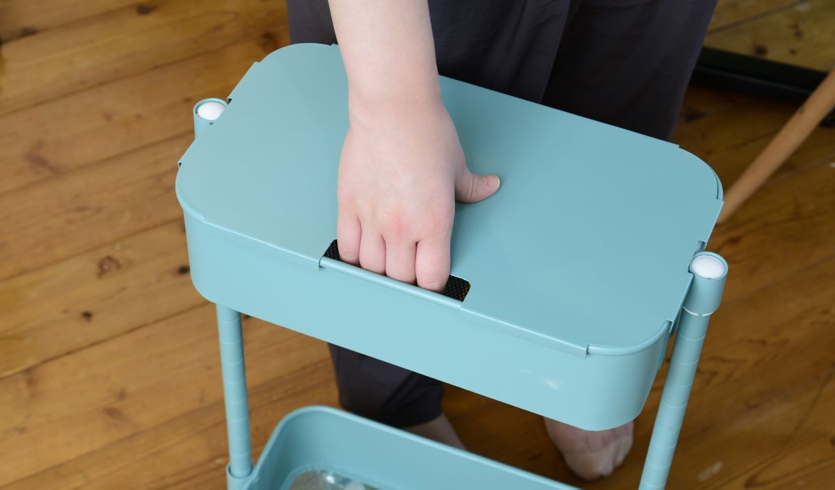 | 仕様 | ●机の下にも収まる、サイドテーブルタイプのバスケットトローリー ●限られたスペースにも使いやすいスリムタイプ ●天板付きで、収納+作業をサポート ●天板は着脱可能、コード穴もありモバイルバッテリーでの充電中もすっきり ●バスケットの高さは2.5cm間隔で調節可能 ●ポイポイ放り込めるカゴ式収納 ●バスケット内寸:幅18.5 奥行33.5 深さ9cm ●耐荷重:1段あたり10kg ●表面はツヤ消しでざらつきもあるマット仕上げ ●重量キャスターで、重いモノが載ってもスイスイ移動 ●キャスター4個(ストッパーなし) |