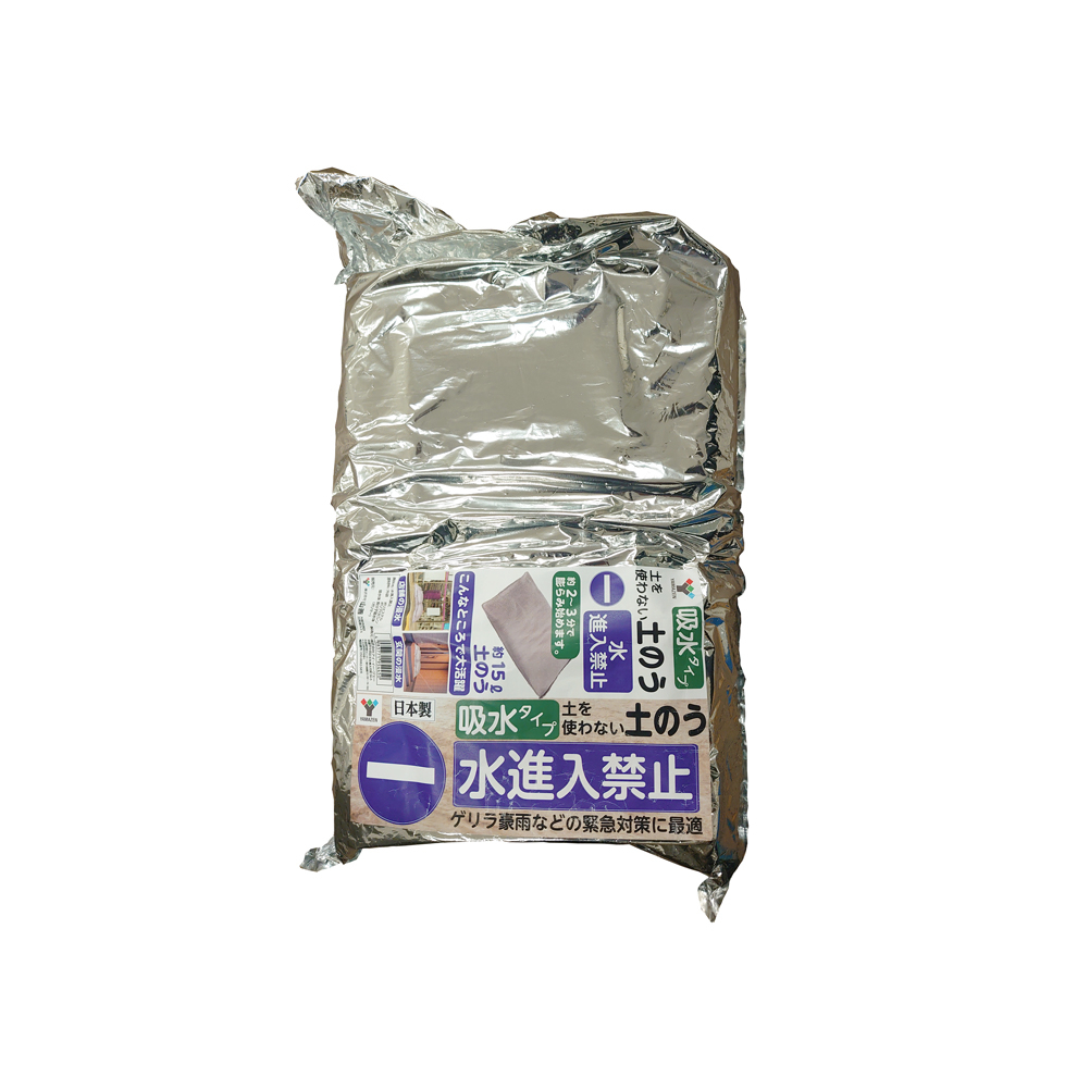 | 仕様 | ●土が不要な水に浸すだけの土のう袋 ●お得な約15L×6枚入り ●高吸水性樹脂が水を吸収し約2から3分で約250gの本製品が約15kgの土のうとしてご使用可能になります ●水に浸すだけなので女性や高齢者にも取り扱いやすく作り方も簡単です ●ご使用方法 1:大きめのポリ袋に本製品を1枚入れてください 2:ポリ袋に約40から50Lの水を注いでください 3:ポリ袋を結び約2から3分もみ込んでください 4:膨脹後、ポリ袋から取り出せば土のう袋の完成です ●日本製の高分子ポリマーを使用 ●脹らます前は軽量、コンパクトなので運搬が容易、省スペースで保管できるので備蓄に最適です ●中身のゲルが表面に染み出ない新開発繊維を使用 ●表面が濡れても滑りにくいため、積み上げ作業がし易い ●専用ポリ袋が付属しているので水を溜める容器の購入が不要です |