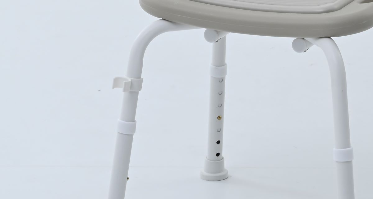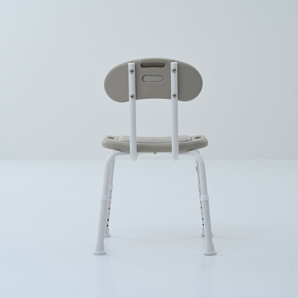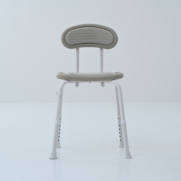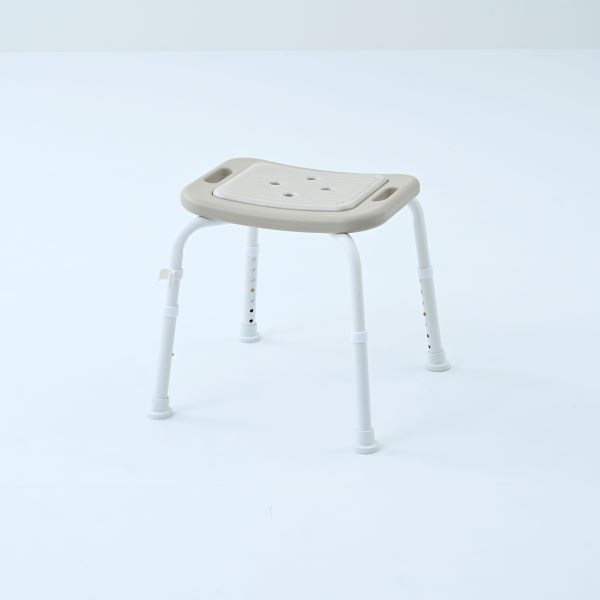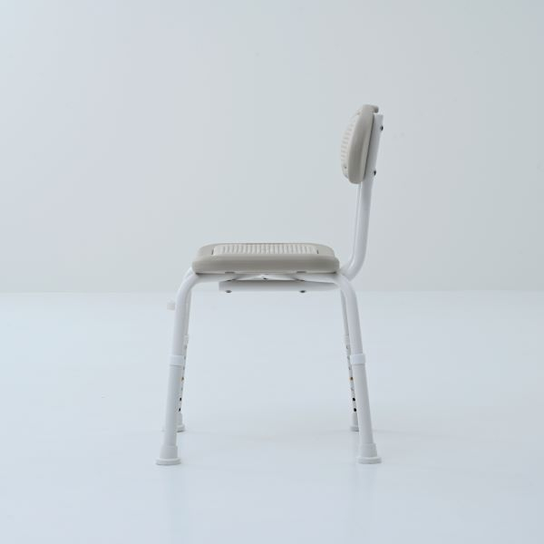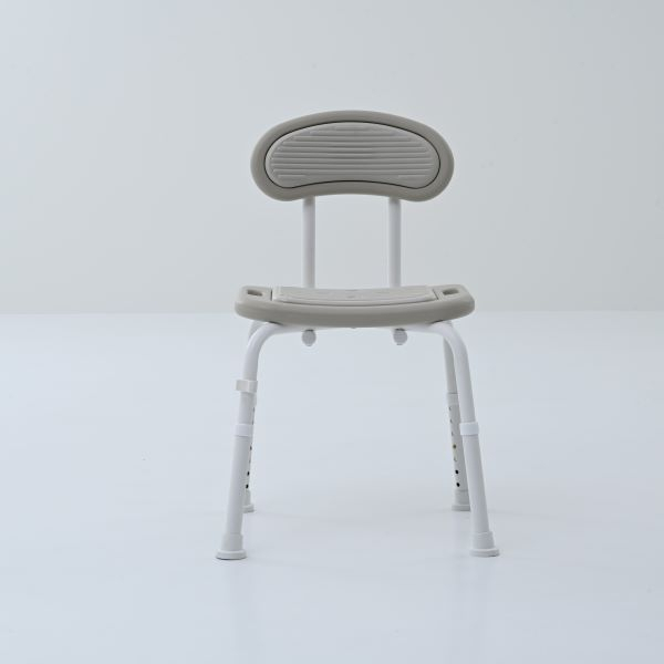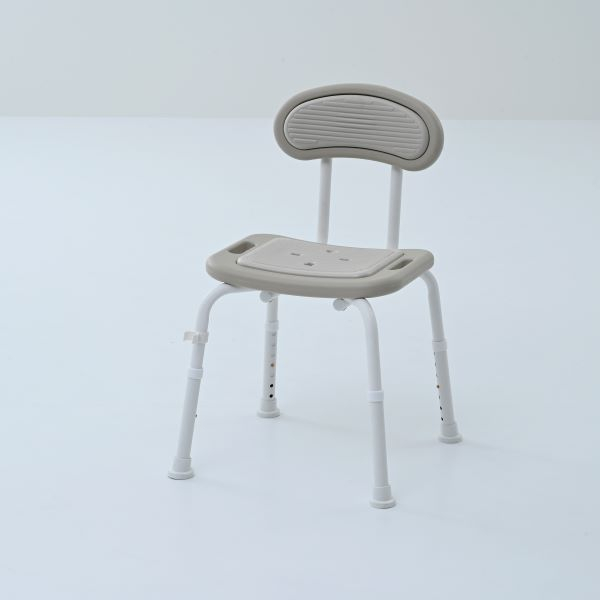 浴室にも馴染むグレージュカラーのシャワーチェア。座部と背部のパッドは取り外し可能。持ち運びし易い軽量設計です。