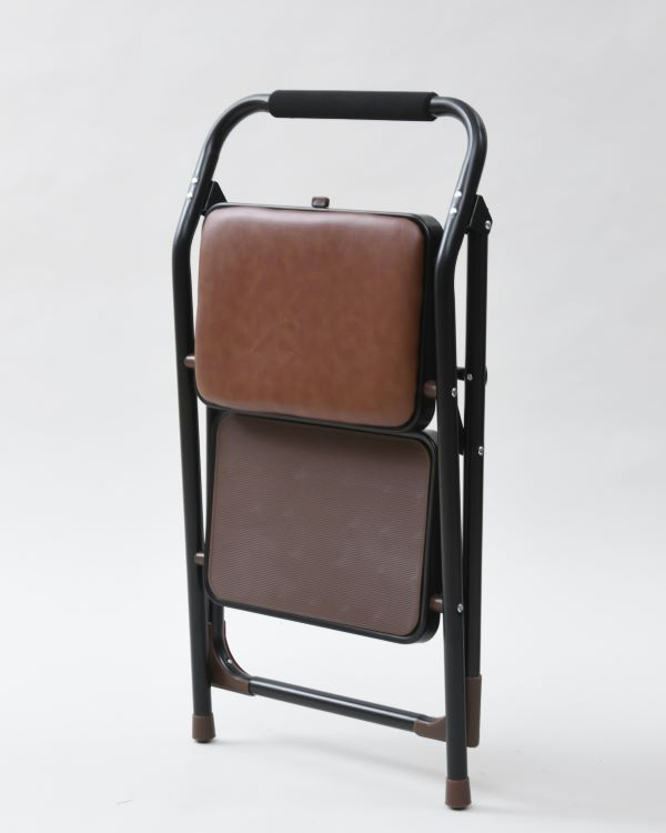 ●踏み台としても、椅子としても使えるアンティーク調デザインのチェア踏み台2段 ●カラーは3色(ブラウン、グレー、ホワイト)よりお選び下さい。 ●座面上段までの高さ:50cm ●折りたたみ時サイズ:幅47×奥行11×高さ85.5cm ●耐荷重:100kg ●座面上段は合皮張りのふかふかクッション仕様 ●座面下段は昇り降りしやすい滑りにくい加工 ●折りたためば幅約10cmなのですき間にサッと収納可能 ●背もたれにもなるグリップ付き ●床を傷付けにくい脚カバー付き |