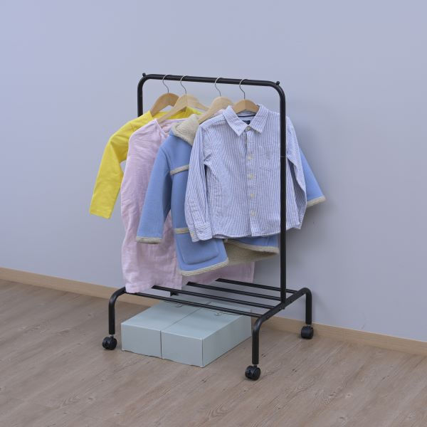 シンプルな棚付きハンガーラック★掃除や模様替えもしやすいキャスター付きです。