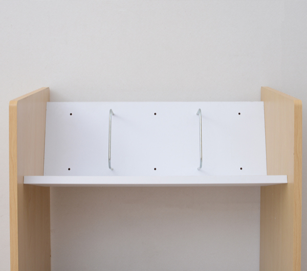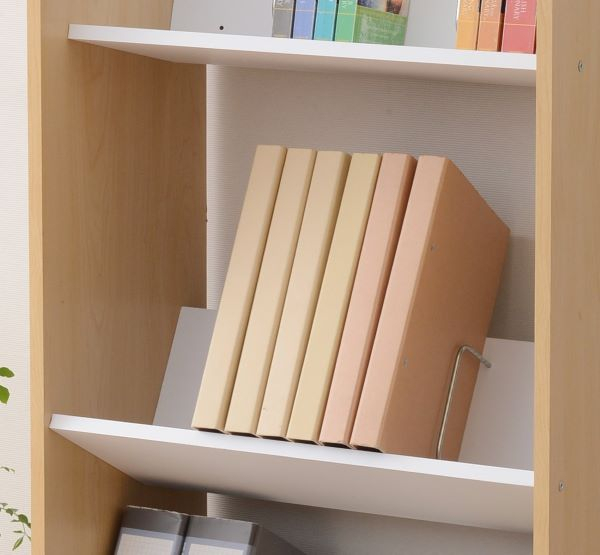 棚板が斜めだから取り出しやすく、本や資料等のタイトルも見やすくなっています。