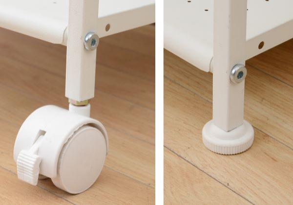 | 商品説明 | ●すっきりとしたコンパクトラック ●リビング、キッチン周り、サニタリー周り、どこでも使えるマルチデザイン ●固定式アジャスターと、キャスターがどちらも付属の2WAY仕様 【アジャスター装着時】外寸:幅44 奥行32 高さ46cm ●棚板サイズ:幅40 奥行27 (こぼれ止め高さ)5cm ●棚板間高さ:32cm ●棚板耐荷重:約10kg(1枚あたり) ●全体耐荷重:約20kg ●キャスター4個のうち、ストッパー付き2個 |