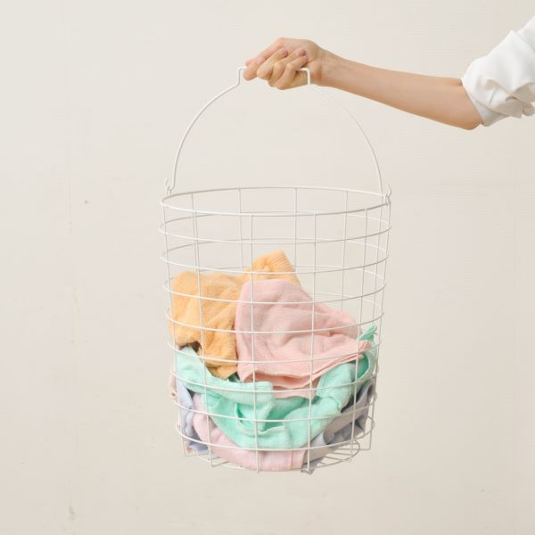 狭いスペースに最適な、縦型のランドリーバスケットです。