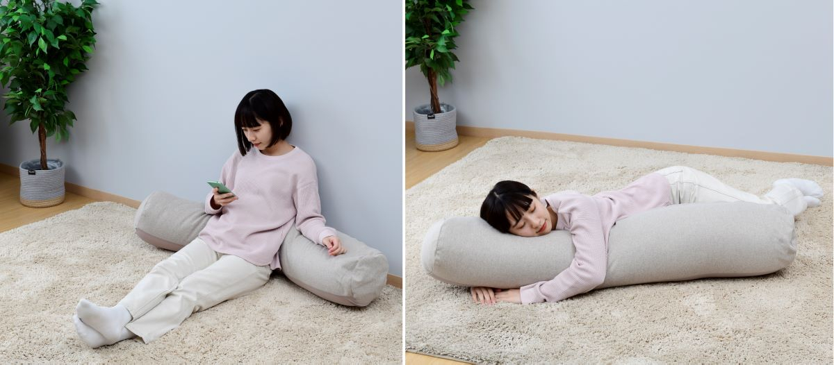 横になって抱き枕としても使えるビーズクッションのロールタイプです。