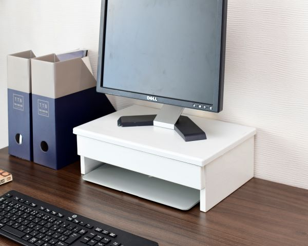 | 商品説明 | ●キーボードやマウスを収納してデスク上を有効活用できるモニタースタンド ●FAXやプリンター台としても便利 ●A4サイズの入る引き出し付き ●背面底にはケーブル類を通せるスリット入りで配線がスッキリ ●引き出し下は高さ6cmでキーボードやマウスもしっかり収納 ●コード穴:高さ1.5cm(1箇所) ●天板有効サイズ:幅40 奥行26cm ●引き出し内寸:幅34.5 奥行23 高さ4.5cm ●引き出し下内寸:幅36 奥行22 高さ6cm ●耐荷重:天板10kg 引き出し1.5kg |