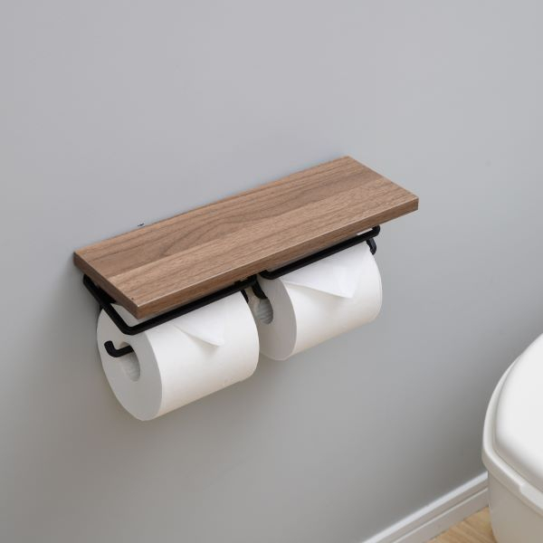 木目調の棚板が付いたトイレットペーパーホルダー♪小物を置ける天板付き★