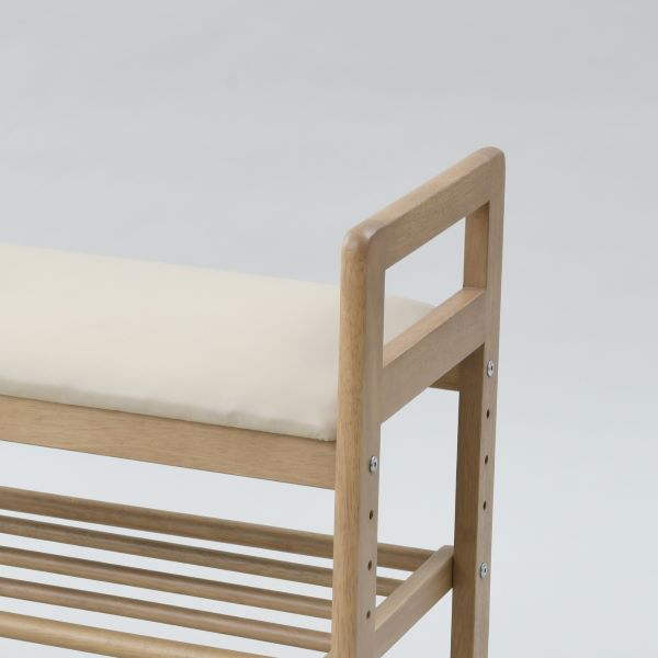| 商品説明 | ●広々座面でゆったり、持ち手付きで立ち座りしやすいスツール ●両サイドの持ち手はフレーム一体型でしっかり構造 ●座面にはクッション入り、合皮の張り地でお手入れもラクラク ●収納棚2段付きでスリッパや靴の収納に便利 ●座面は使う人に合わせて、4段階で高さ調整可能 ●温もりのある天然木素材 ●がたつきを防ぐアジャスター付き ●座面の高さ:35/39/43/47cm ●座面サイズ:幅66 奥行31cm ●収納内寸(上段):幅62.5 奥行29 高さ2.5/6.5/10.5/14.5cm ●収納内寸(下段):幅62.5 奥行29 高さ15cm ●耐荷重:座面90kg、棚板1枚あたり3kg ※マイナスドライバーが必要になります。ご用意お願いいたします。 |