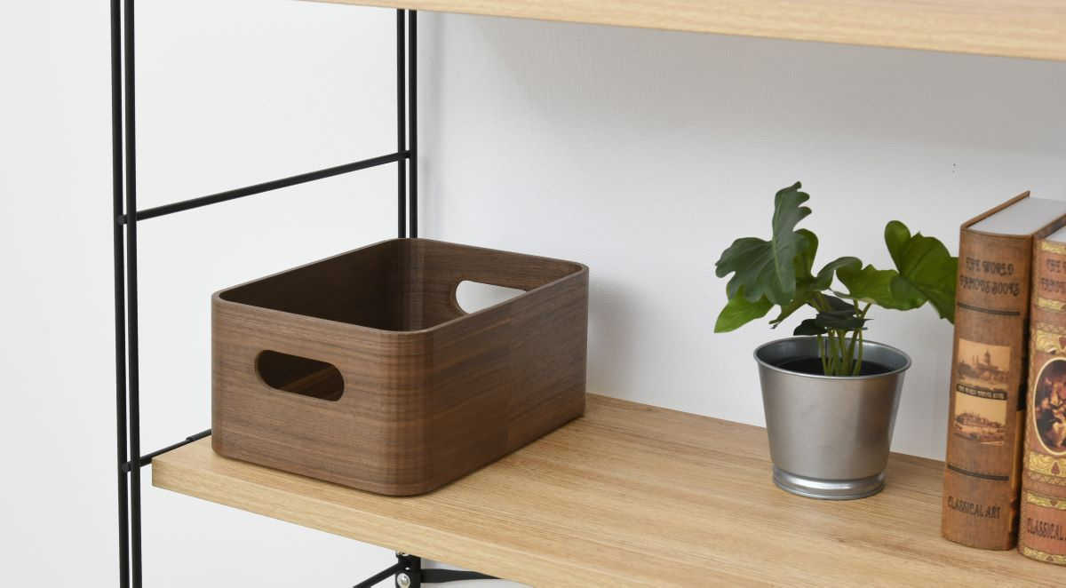 突板で木の風合いが優しい収納ボックス。積み重ねも可能♪