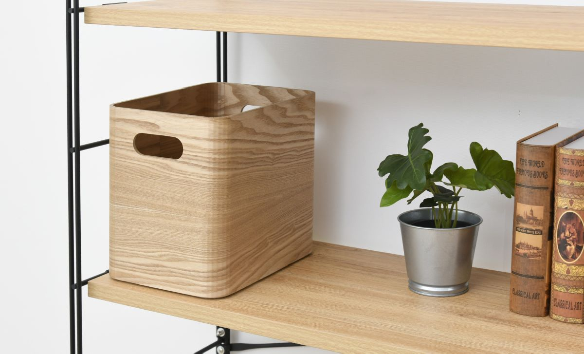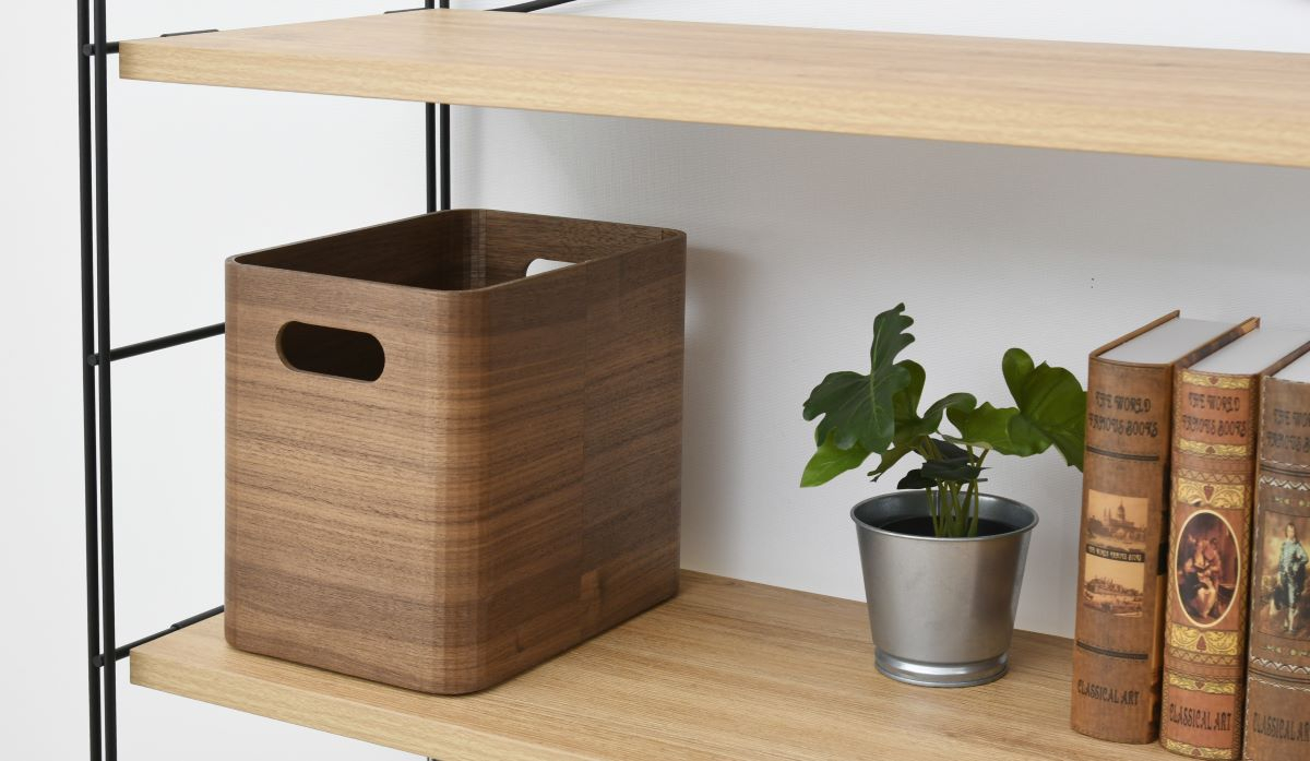 突板で木の風合いが優しい収納ボックス。積み重ねも可能♪