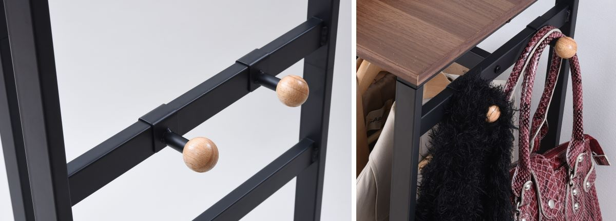 掛ける、置く、飾る、スペースを有効活用するハンガーラックです。