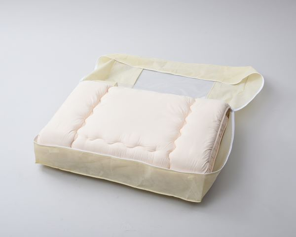 | サイズ | 【掛け布団】 150×210cm 重量2.6kg 【敷き布団】 100×200cm 重量(A)3.0/ (B)3.5kg 【枕】 58×39cm 重量0.6kg 【掛けカバー】 150×210cm 【敷きカバー】 105×215cm 【枕カバー】 63×43cm 【収納袋】 100×67×35cm 重量0.3kg |