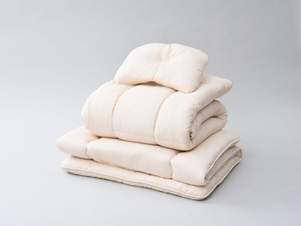 | 材質 | 【掛け布団】 詰め物:ポリエステル100%、1.6kg 側地:ポリエステル100% 【敷き布団 A】 詰め物:巻綿 ポリエステル100%、1.5kg、ウレタンフォーム、1.0kg 側地:ポリエステル100% 【敷き布団 B】 詰め物:巻綿 ポリエステル100%、1.5kg、固綿 ポリエステル100%、1.5kg 側地:ポリエステル100% 【枕】 詰め物:ポリエステル100%、0.5kg 側地:ポリエステル100% 【カバー(共通)】 側地:ポリエステル100% 【収納ケース】 不織布・塩化ビニル樹脂 |