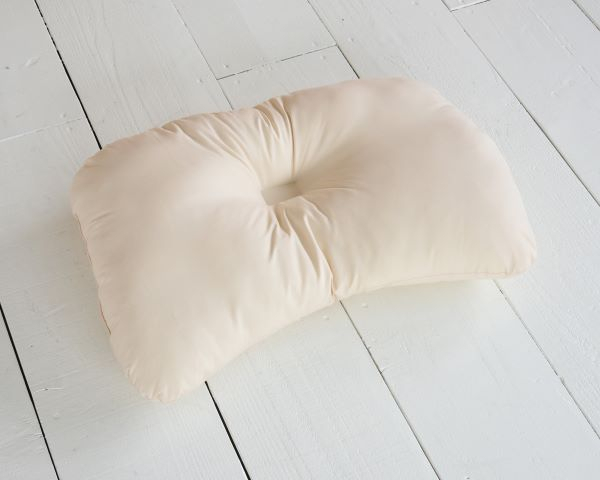 枕の中央はフィットするよう窪んでいて、寝返りをサポートするよう首元がアーチ形状になっています。