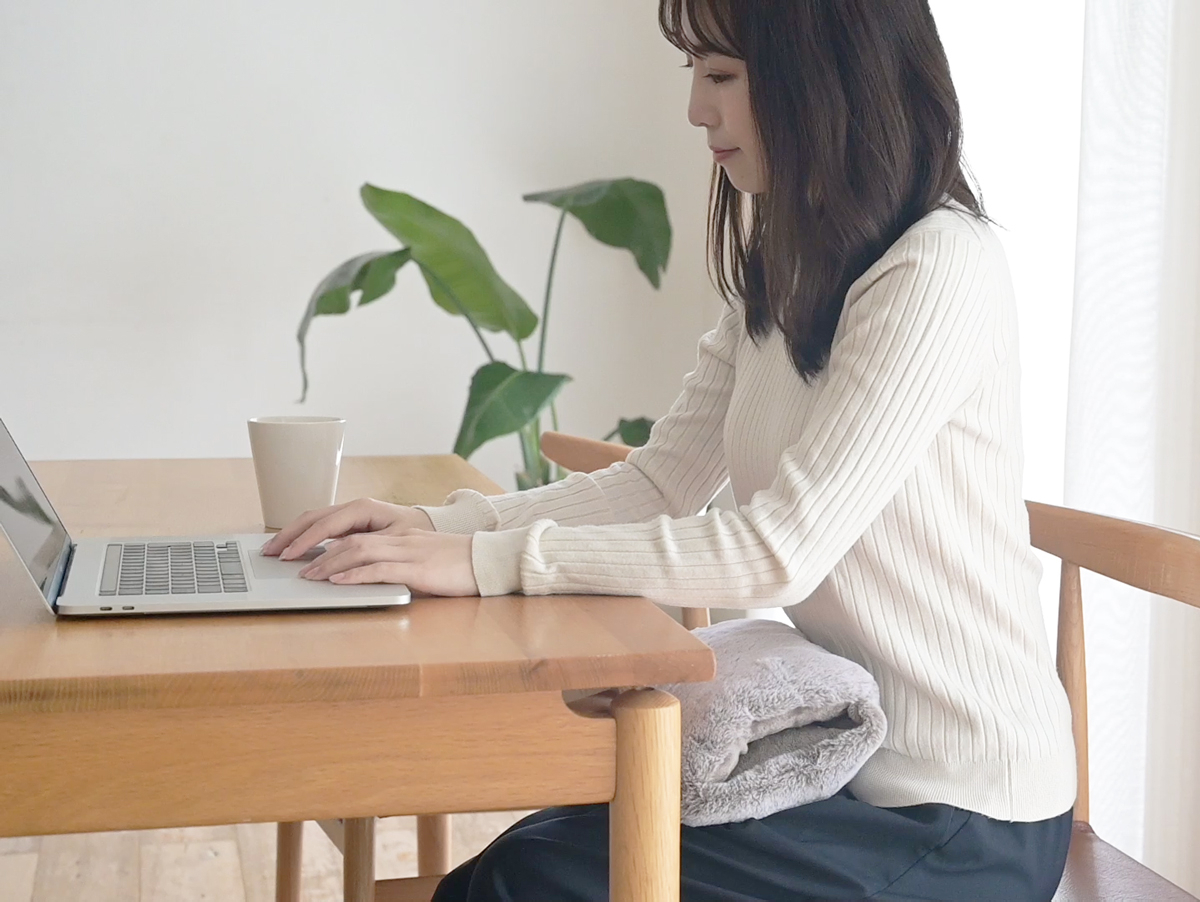中に手が入れられるようになっているので、デスクワークで冷えた手元を優しくあっためてくれます。
