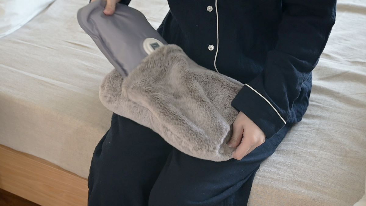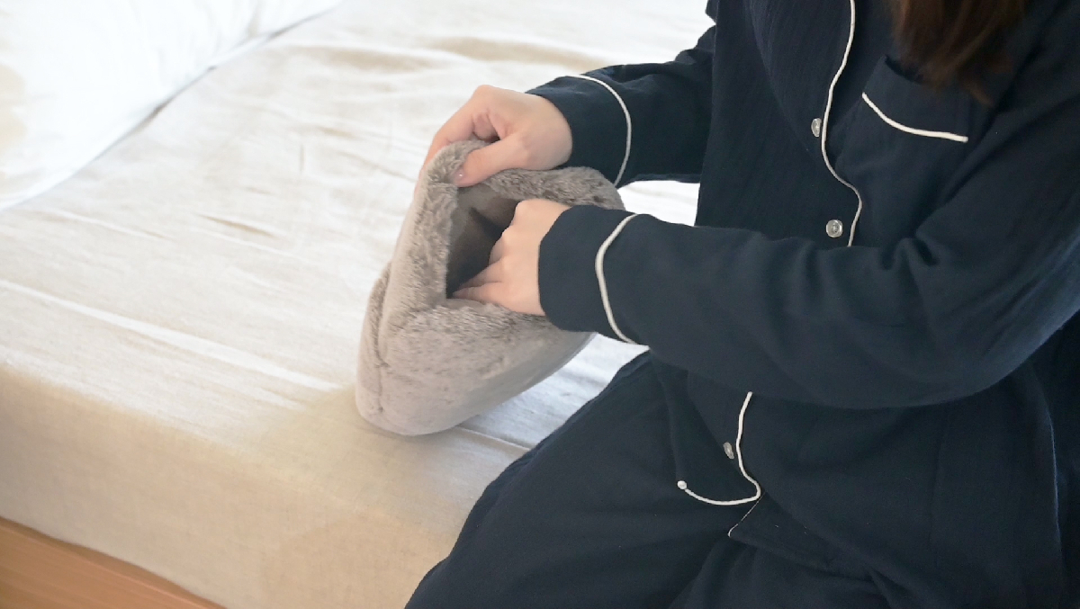 中に蓄熱式の湯たんぽが内蔵されているので、充電して保温カバーに入れてお使いいただきます。