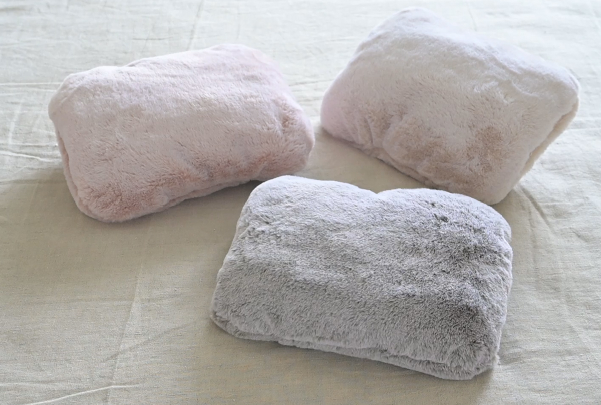 ラビットファー調のふわふわ感触の湯たんぽです。