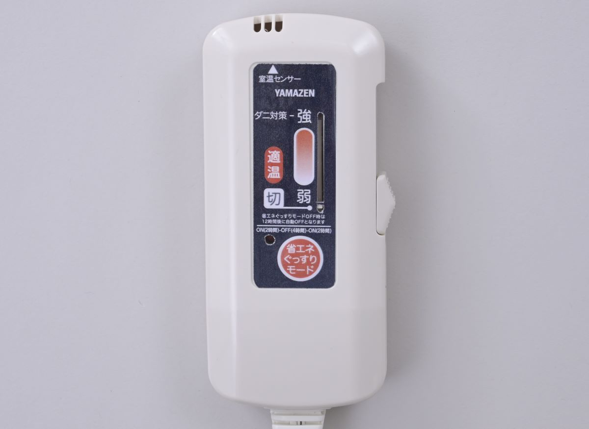 | 仕様 | ●消費電力:60W ●表面温度:(弱)約23度、(適温)約33度、(強)約53度 ●1時間あたりの電気代目安:(弱)約0.4円、(適温)約0.7円、(強)約1.4円 ※電力料金目安単価31円/kWh(税込)で算出 ●ダニ退治機能 ●本体丸洗い可能 ※コントローラーは洗えません ●ぐっすりタイマー機能搭載 就寝時にスイッチを入れると2時間暖房→4時間暖房停止→2時間暖房します。睡眠前後の暖房で快適な眠りを得られます ●12時間後自動切タイマー ●室温センサー搭載 |