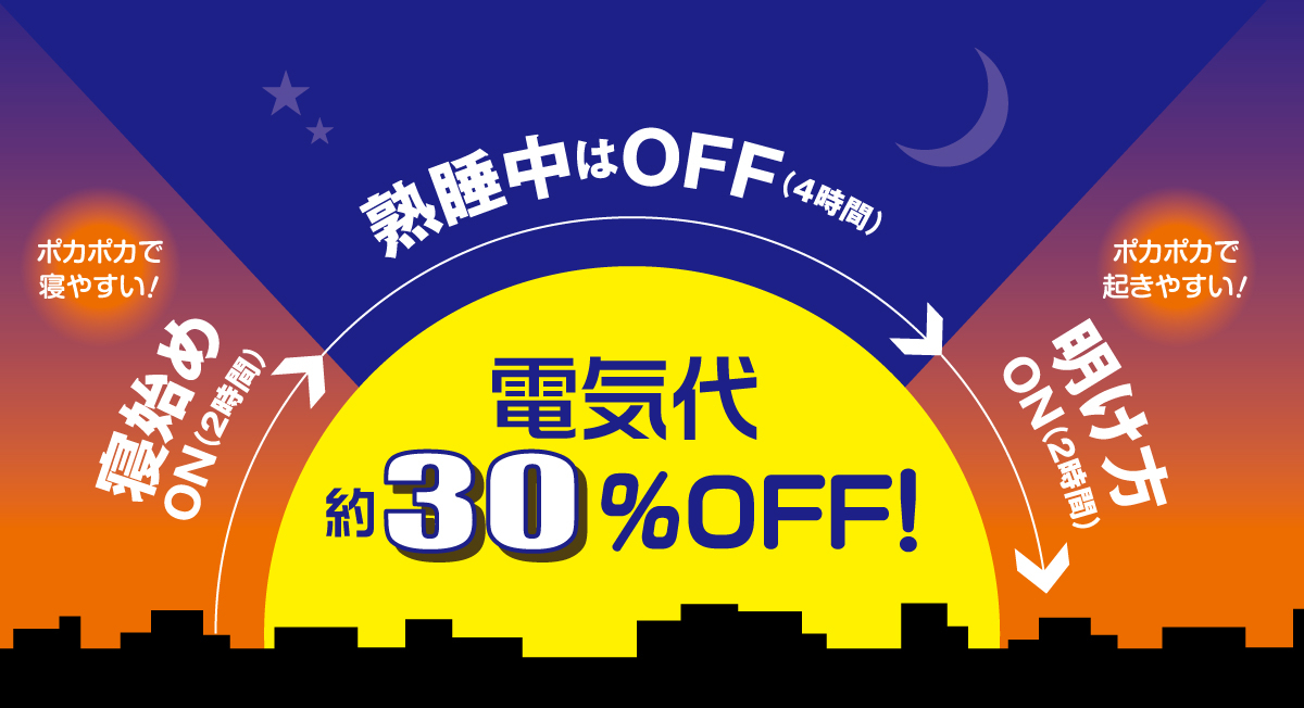 省エネぐっすりモード搭載だから、電気代約30%OFF!(当社従来品比較)
