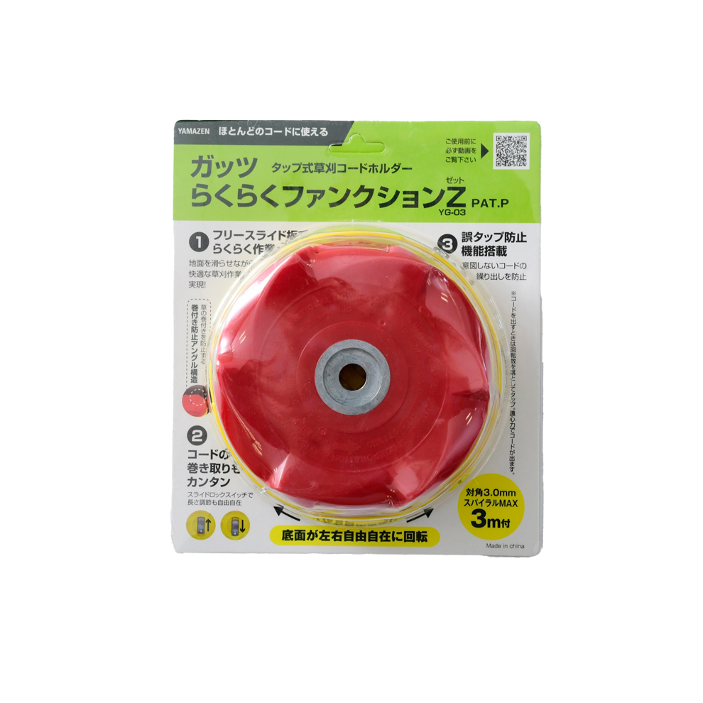 | 商品説明 | ●殆どのコードに対応するタップ式草刈コードホルダー ●草刈コードの挿入はホルダーを分解することなく、草刈り機に装着したままコードの装填が可能 ●スライドロックスイッチでコードの巻取り・長さ調整が簡単 ●地面を滑らせながら快適な草刈作業が可能なフリースライド板搭載 ●意図しないコードの送出しを防止 ●草の巻き付きを防止する巻き付き防止アングル構造で草刈時のストレスを軽減 |